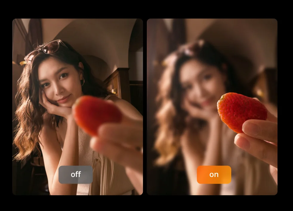 Фиксируйте объект в фокусе даже во время движения. В новом режиме «Витрина продуктов» основное внимание уделяется переднему плану, что идеально подходит для прямых трансляций.